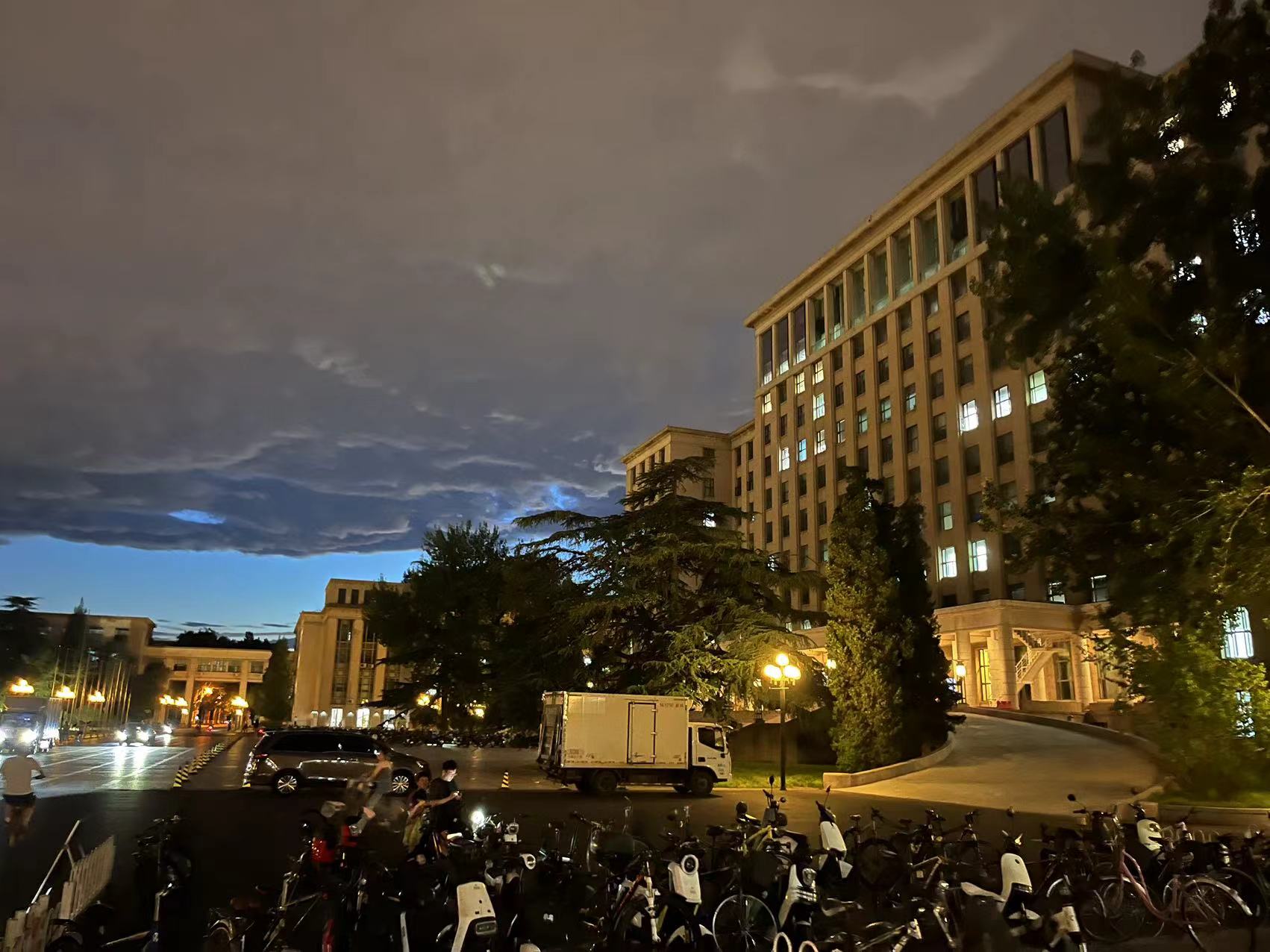 上面两张图是我在周五接近 9 点时离开清华东主楼时拍摄的图片,其实平常我并不会这么晚走,这周是因为在调试一个 bug 但最后也没调试出来。出清华后来到五道口枣糕店排队买枣糕当作周末的早点,排队过程中贾爷问我机器是否跑着内核,他帮着调试一下,于是赶忙打电话给实验室的 zyr 师兄让他帮忙重启下机器。忘记了排了多长时间的队,可能要接近半小时终于买到了枣糕并坐地铁回去。回到租房内已经接近 10 点了,于是开始洗漱洗衣服。到 11 点多的时候,贾爷给我发消息说他快要调出来了,于是一直和贾爷讨论到 1 点,最终贾爷用三四个小时调出了我 2 天没有调出的 bug。